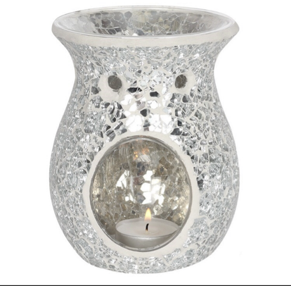 Beautiful White burner with a irridecsent mirrored crackle effect.